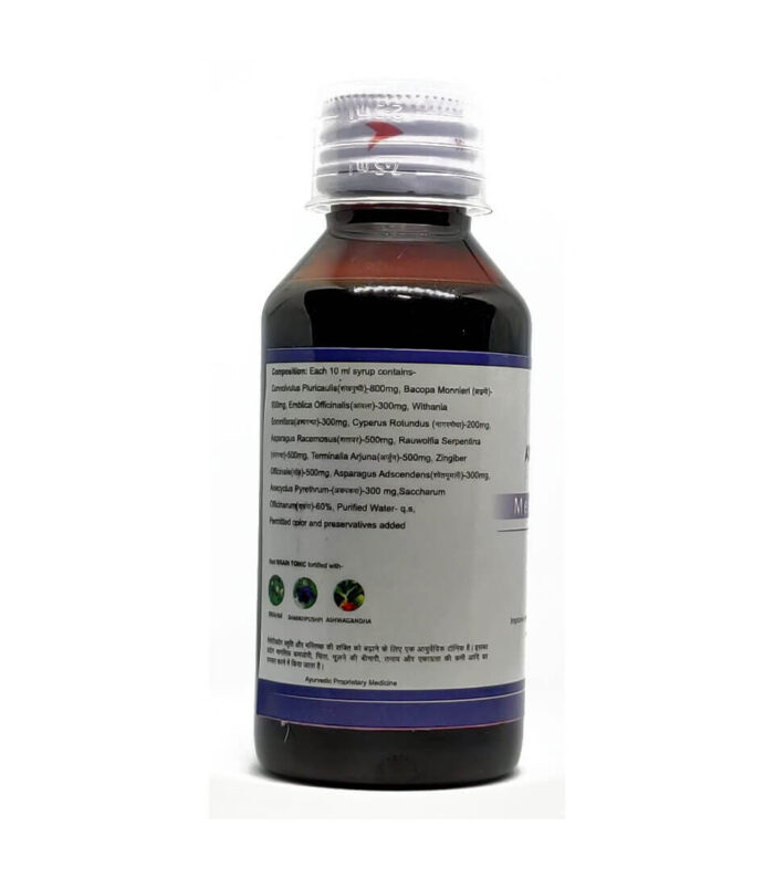 MEMORY CURE SYRUP “is recommended for improving mental performance, increase focus, concentration, and for the complex normalization of the higher nervous activity and functional activity of the brain. It comprise 8 active herbs ingredients that helps in rejuvenation of the mind. It contain a rich formulation of Centella asiatica(Gotu Kola’), Acorus calamus(‘Vasa bach’), Bacopa monnieri(‘Brahmi’), Convolvulus pluricaulis(‘Shankhapushpi’), Glycyrrhiza glabra(‘Licorice’), Emblica officinalis(‘Amla’), Withania somnifera(‘Ashwagandha’), Tinospora cordifolia(‘Guduchi’) with absolutely no side-effects.
